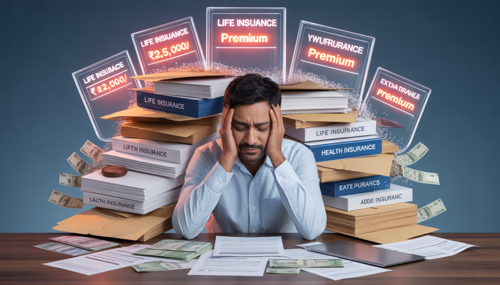 Multiple health insurance policies are another COMMON mistake. Having insurance from your employer, plus a family floater, plus individual policies for each family member creates UNNECESSARY overlap. You can’t claim the same medical expense from multiple insurers, so you’re essentially paying multiple premiums for single coverage.